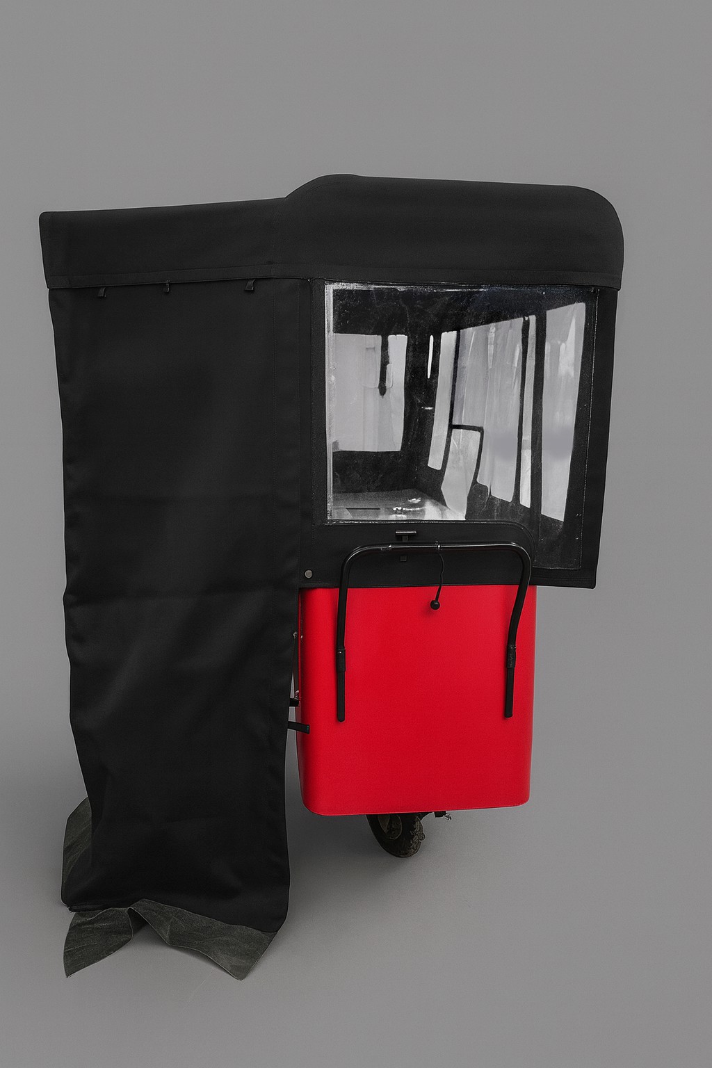 Kurtyna chroniąca przed czynnikami pogodowymi pozwala na komfortową pracę sprzedawcy, jednocześnie zapewniając płynność sprzedaży przez cały rok.