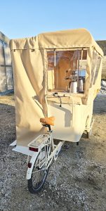 Pokrowiec od Foodbike to w praktyce namiot sprzedażowy, który umożliwia obsługę klientów bez względu na pogodę. Dzięki niemu Twój wózek gastronomiczny, rower gastronomiczny czy stoisko gastronomiczne staje się funkcjonalnym punktem gastronomicznym 365 dni w roku.