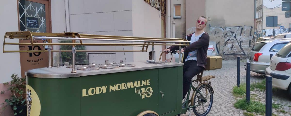 Wózek gastronomiczny w postaci roweru dla Lody Normalne